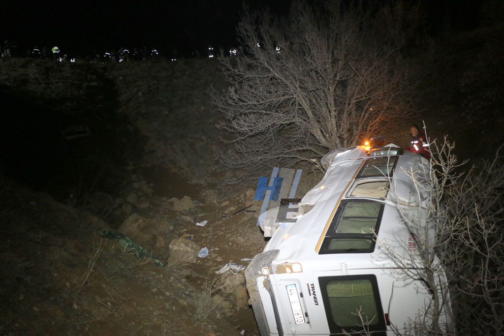 Mustafa Özdemir’in kullandığı 44 S 7810 plakalı maden işçilerini taşıyan servis minibüsü, Güvenç Mahallesi’nde yoldan çıkarak şarampole devrildi.
